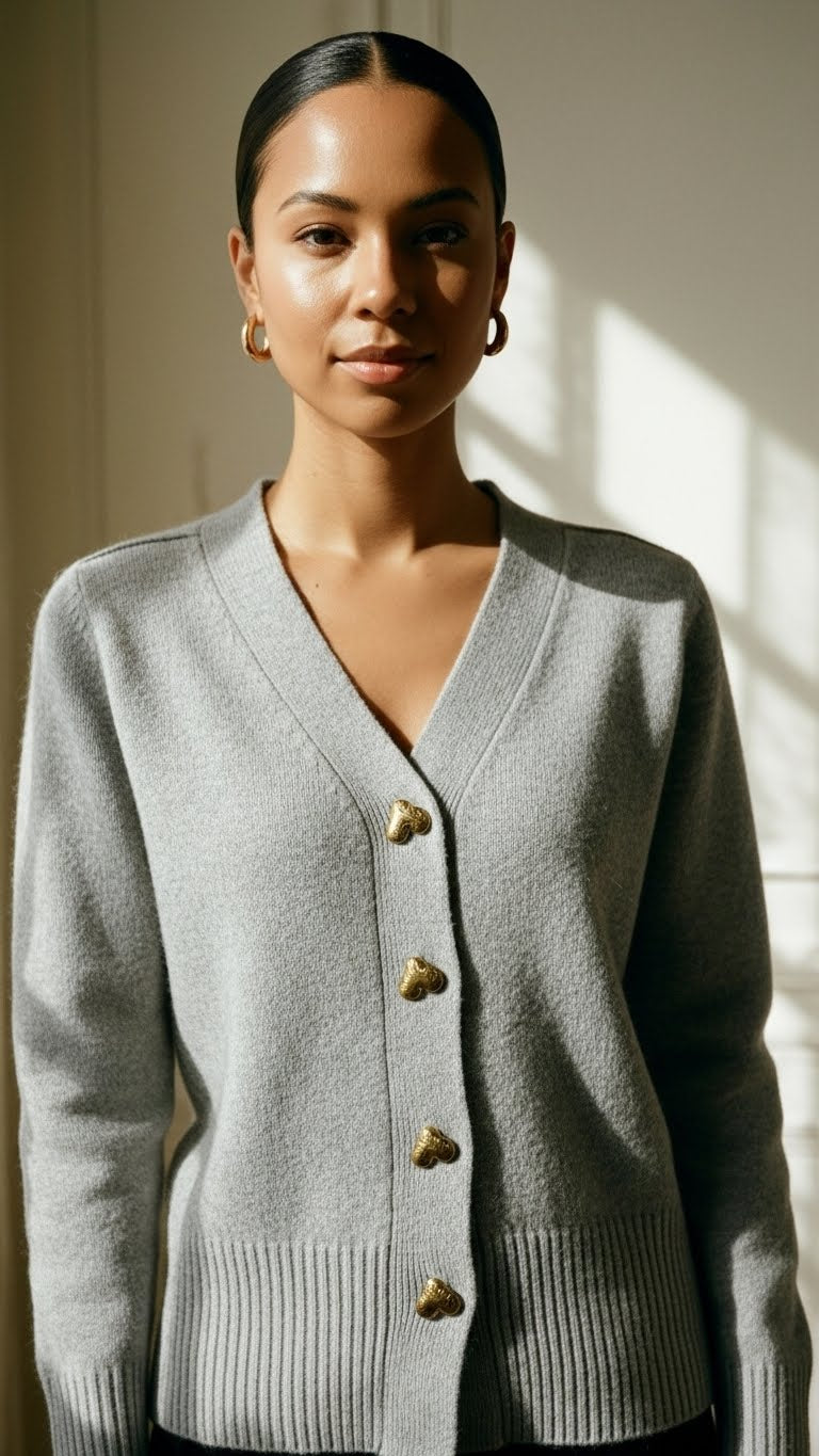 Cardigan boutonné en laine pour femme "Coeur d'Or"